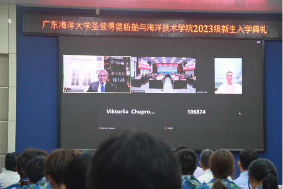 9月13日上午,广东海洋大学圣彼得堡船舶与海洋技术学院2023级新生入学典礼在水生生物博物馆报告厅举行。学院联合管理委员会中方成员、相关单位部门领导、电信(中俄)1231班和船海(中俄)1231班48名新生及联络员、辅导员和班主任现场参加活动,俄罗斯圣彼得堡国立海洋技术大学副校长基里尔·罗杰斯特文斯基、俄方授权代表欧亚国际协会会长冯耀武线上参会。学校党委书记杨洲出席并致辞,典礼由副校长高秀梅主持。